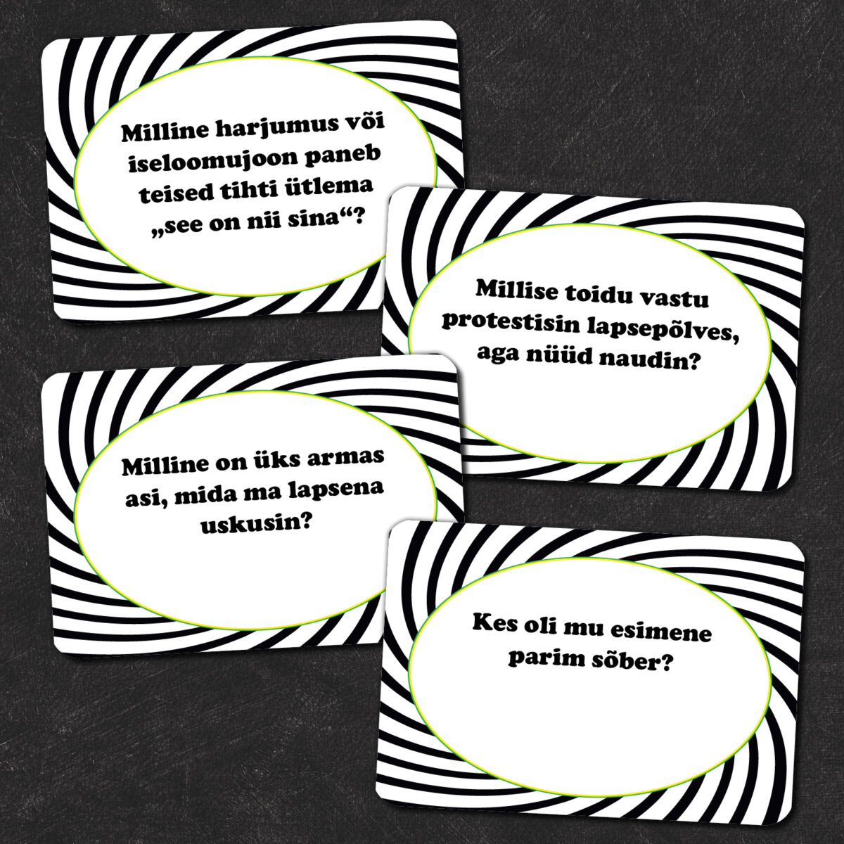 Mina-mina – iga mängija saab kaardi ja vastab küsimusele enda kohta.